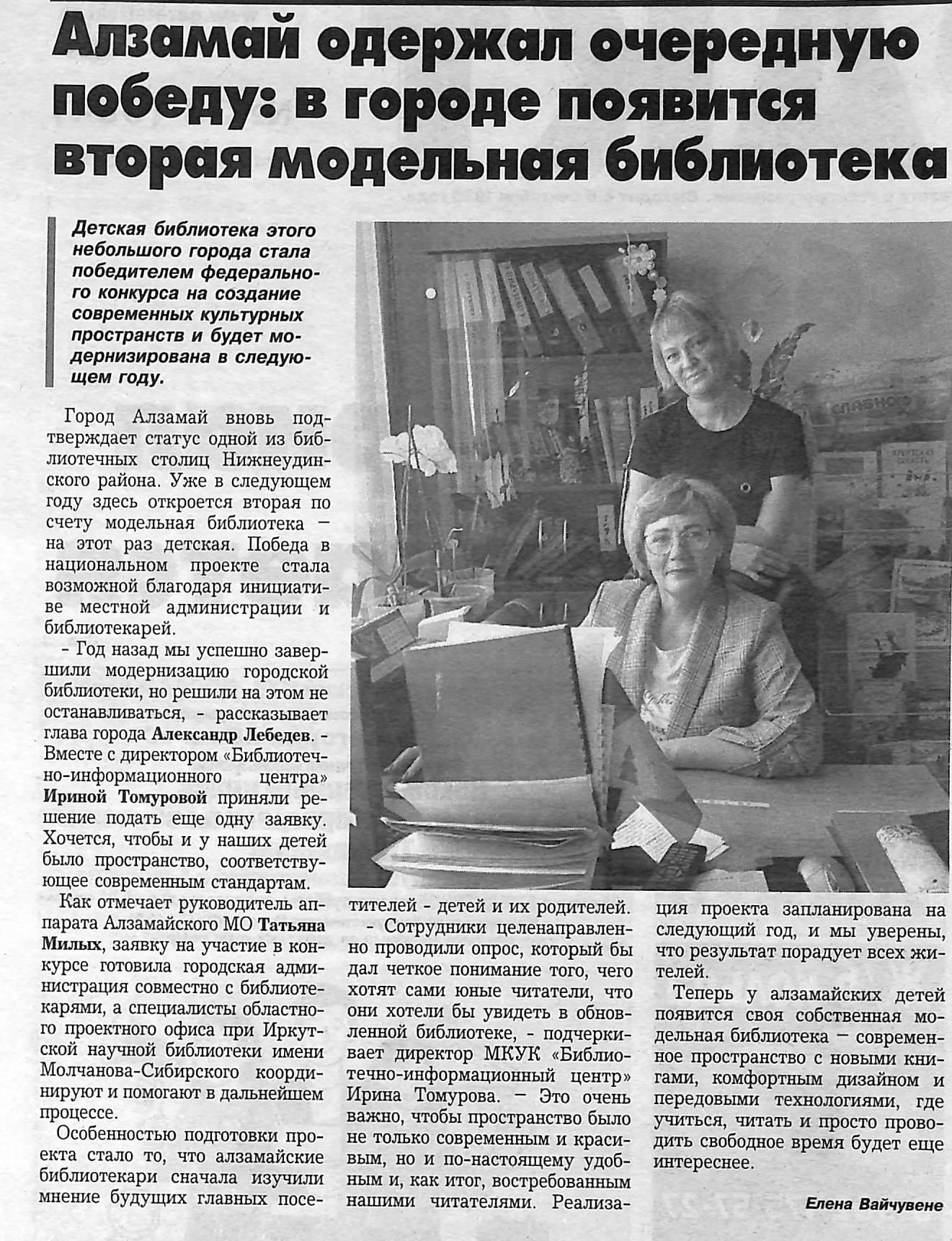 7. Вайчувене, Е. Алзамай одержал очередную победу: в городе появится вторая модельная библиотека / Елена Вайчувене// Тракт. – 2025. – 24 сентября (№38). – С.2.